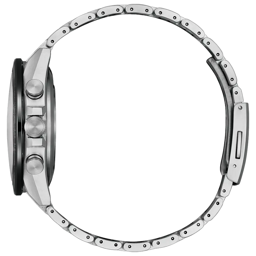 シチズン独自の技術で開発した**結晶チタニウムを中駒に採用**。デュラテクトプラチナを重ねることで結晶模様がプラチナの輝きをまとい、存在感を放ちます。ACT Lineにふさわしい、先進性と力強さを備えた限定モデルです。