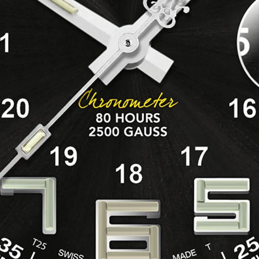 振動数を維持したままロングパワーリザーブを実現した自社製キャリバー。金曜日の夜に外しても月曜日の朝に動き続けている約80時間の持続力は、現代を生き抜くユーザーへの最高の贈り物です。