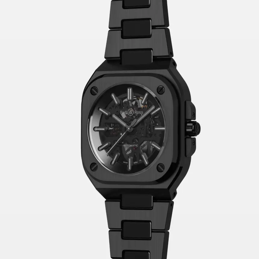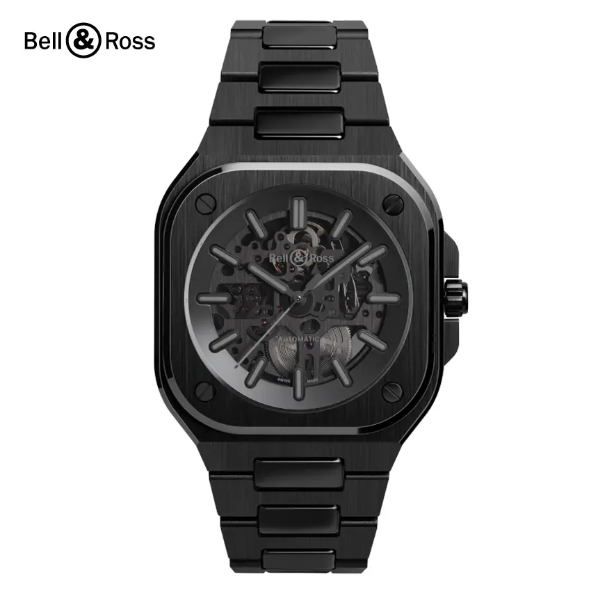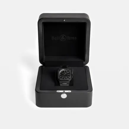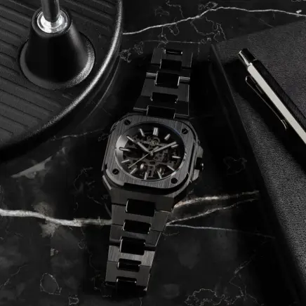卓越した技術とデザイン性を兼ね備えた、世界500本限定の特別なタイムピース。全体をブラックで統一したステルス美学を採用し、ブラックセラミック製のケースとブレスレットが、精緻なスケルトン構造のムーブメントを鮮やかに引き立てます。