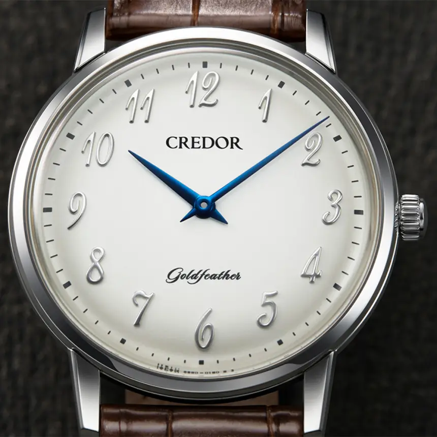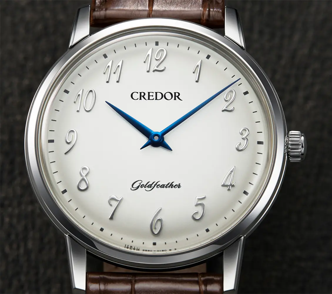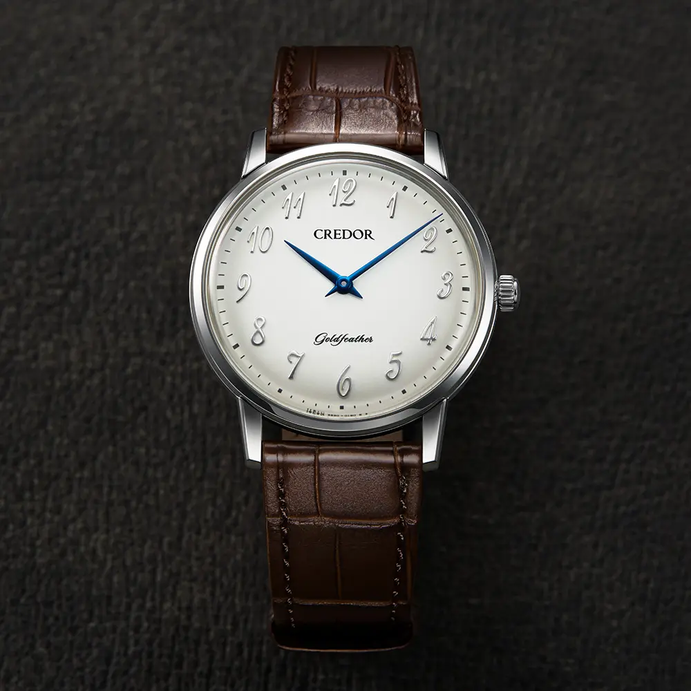 「薄型ドレスウオッチを現代に継承する」ことを使命とするゴールドフェザーに合うように、1980 年クレドール初のアラビアダイヤルとして生まれたフォントを採用。