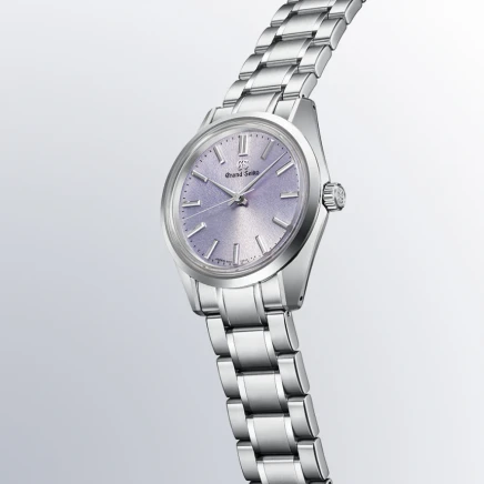 この44GSが体現した無数の表情を描く構造を受け継ぎ、現代の解釈を加えた「44GS現代デザイン」のメカニカルウオッチです。ブランドを代表するダイヤルパターンのひとつ「岩手山パターン」と、岩手県の県花でもある「桐」から着想を得た柔らかな紫のカラーリングを融合。36.5mm径のミドルケースに映える、上品な顔立ちが特徴のモデルです。