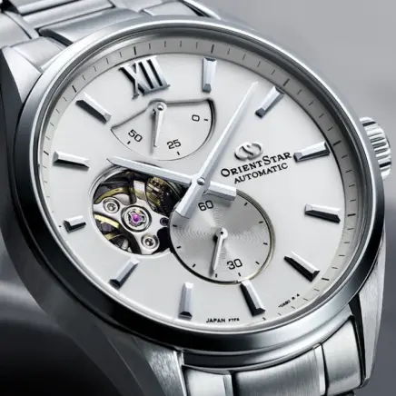 「輝ける星」を追い求めるオリエントスターの最新作。M34 F7 セミスケルトンのホワイトダイヤルモデルは、技術とデザインの洗練が結実した一本です。