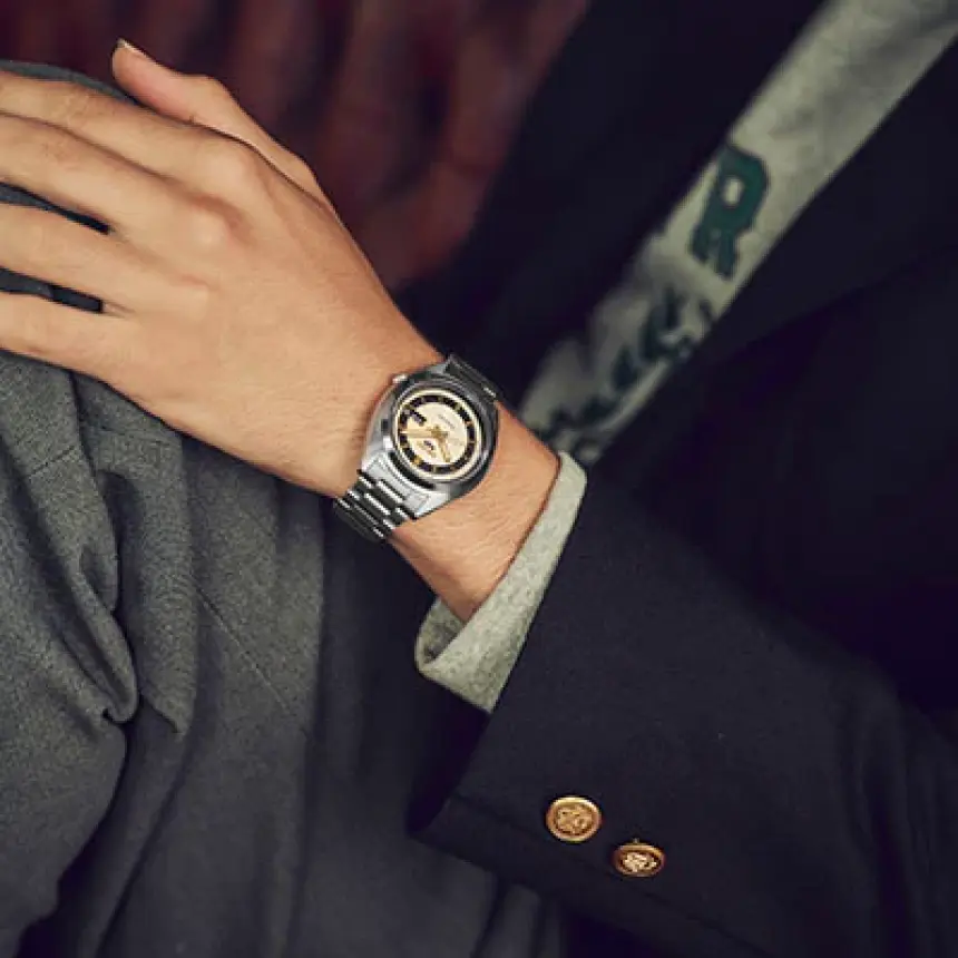 アメリカントラディショナルをベースとしたファッションブランド「J.PRESS」とのコラボレーション限定モデルが登場。ゴールドカラーをアクセントとしたクラシカルなデザインは、ネイビーのブレザーをはじめとするトラッドスタイルに気品を添えます。