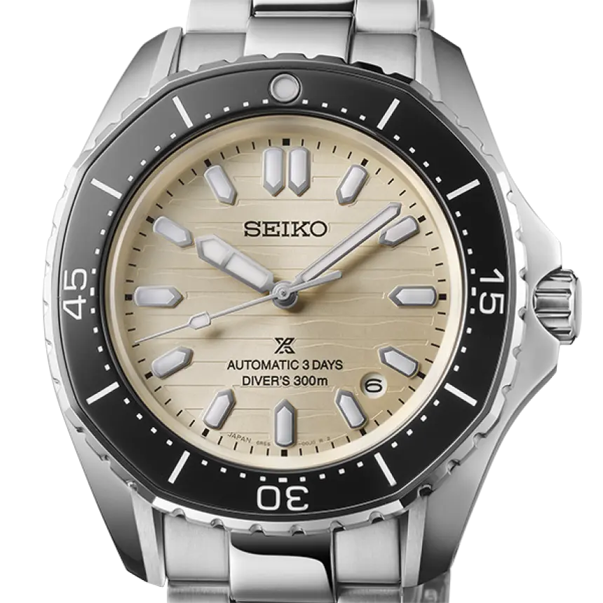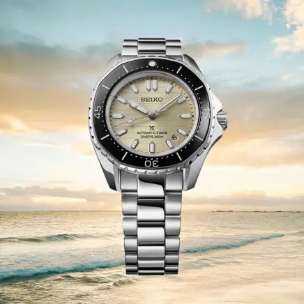 本格ダイバーズとしての性能を維持しつつ、オンオフ問わず活躍する洗練されたデザインを追求したモデル。目を引くのは、柔らかな角形を描く多角形ベゼルと、穏やかな海岸線をイメージした曲線のダイヤルパターンです。