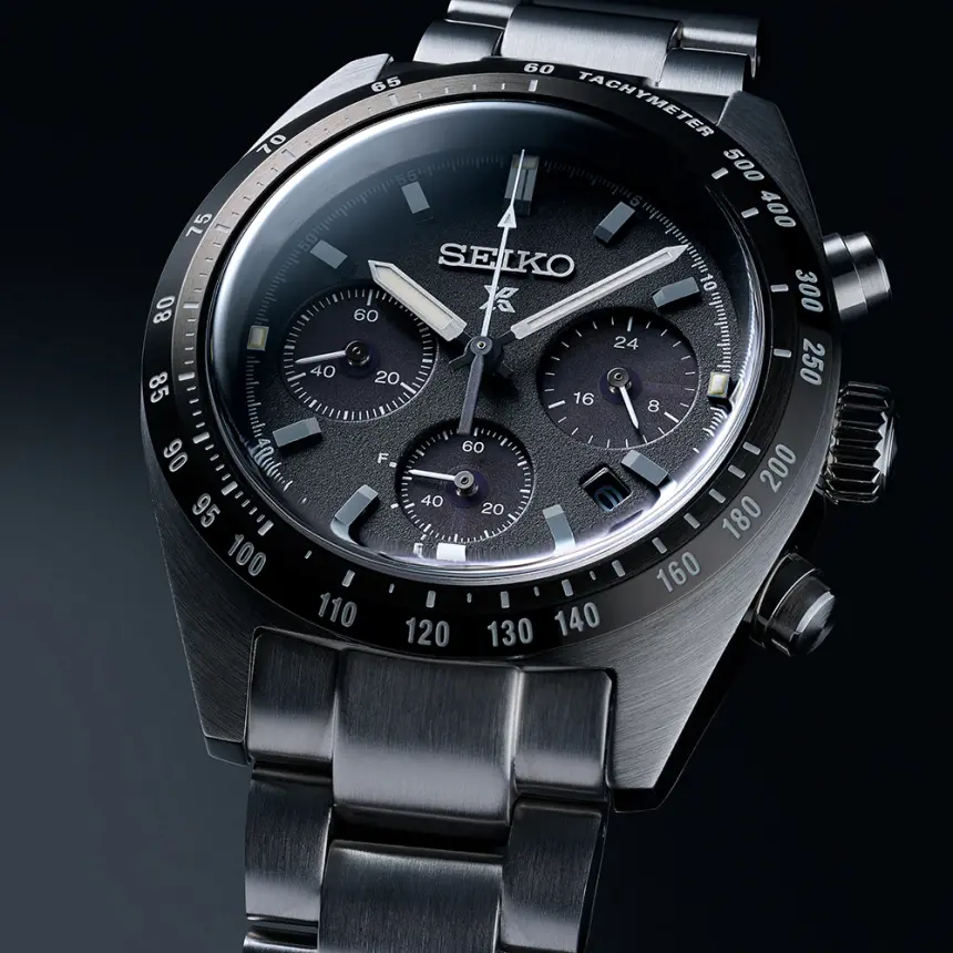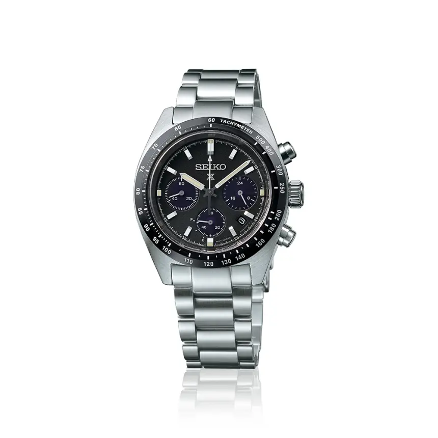 コンパクトな39mmケースには、緻密なヘアラインとミラーポリッシュの仕上げ分けを徹底。カーブサファイアガラスと響き合うその造形美は、腕元で確かな存在感を放ちます。伝統のタキメーターベゼルを備え、計測機器としての純粋な進化を体現した一足です。