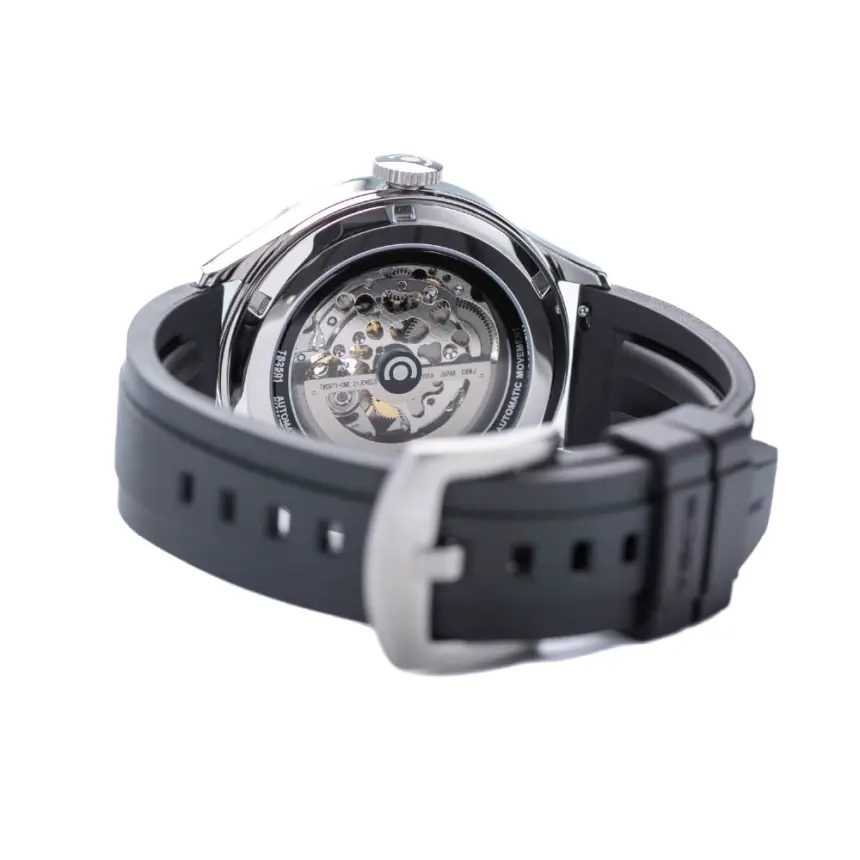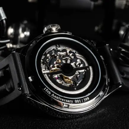 スイス製夜光マーカーを採用し、夜間や暗所でも卓越した視認性を確保。裏蓋には15周年の特別刻印と共に、世界で一つだけのシリアルナンバーが配置され、限定モデルとしての希少性を誇示します。スポーティなラバーストラップが、現代的でアクティブなスタイルを演出します。