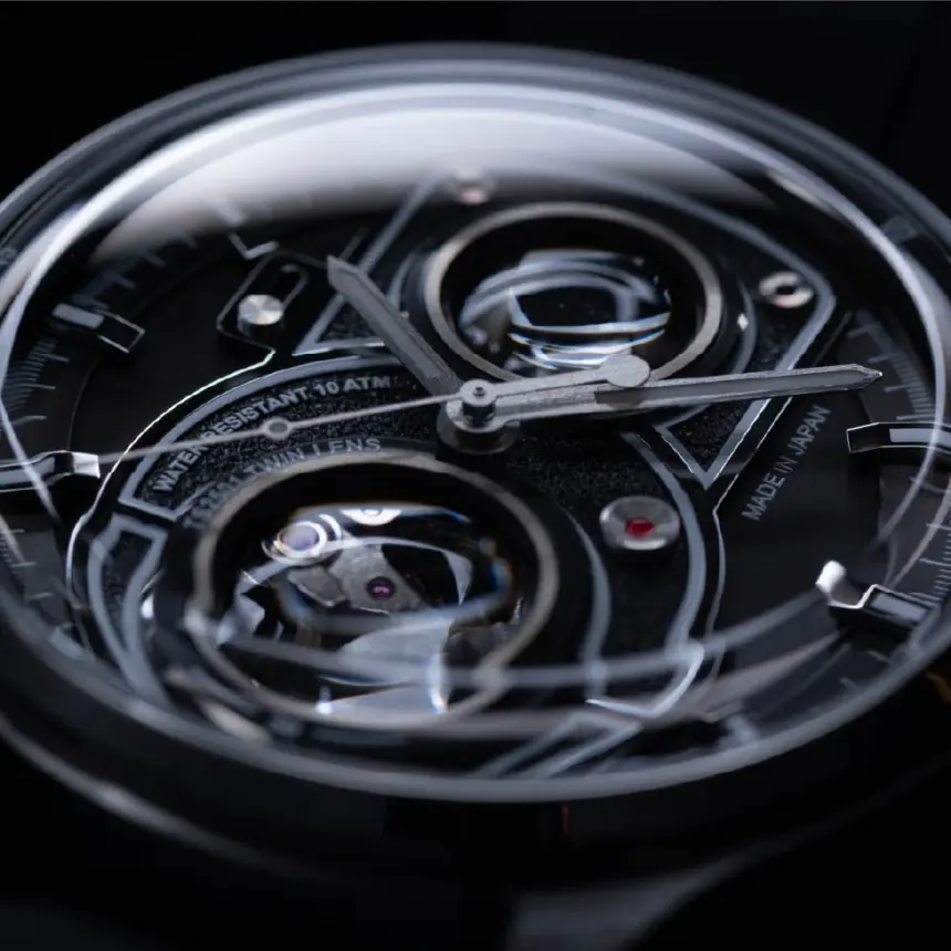 二眼レフカメラを彷彿とさせるツインレンズデザインを踏襲しながら、わずか87gという軽量設計を実現。日本製ムーブメントの搭載だけでなく、組み立ても日本国内で行う「完全なる日本製」へのこだわりが、長時間の装着でも負担を感じさせない快適な着け心地を叶えています。