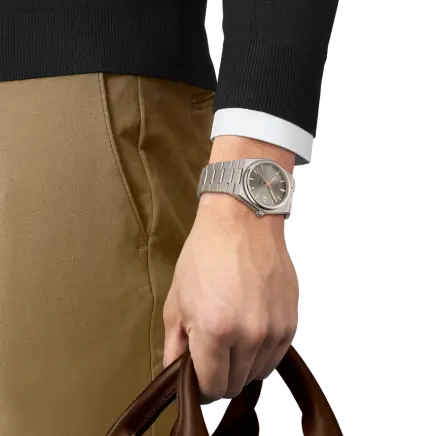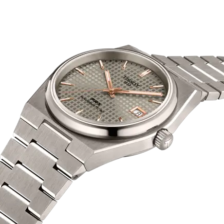 1978年のオリジナルデザインを現代に蘇らせ、世界中で熱狂的な支持を受ける「PRX」コレクション。本作は、待望の38mmケースに軽量かつ強靭な「チタン」を採用した革新的なモデルです。