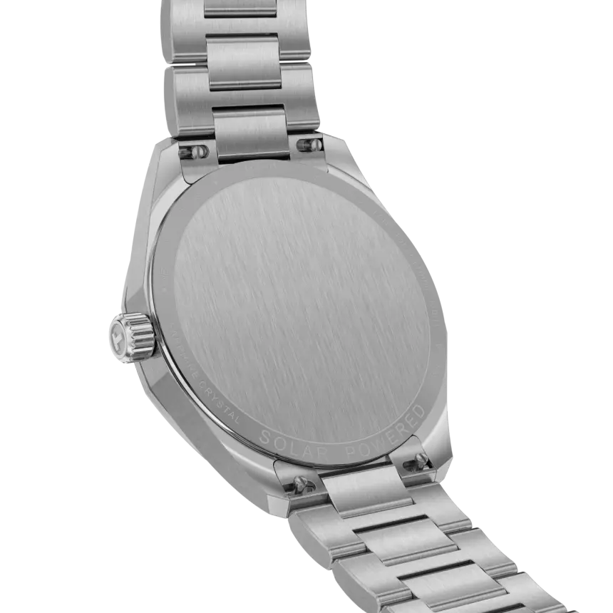 1980年代にルーツを持つこのアイコニックなタイムピースは、その大胆なクラフツマンシップで当時注目を集めた時計です。クラシックなスタイルを復活させながら、太陽エネルギーの力を活用するために作られたTISSOT PRC100 Solarは、TISSOT初のユニセックスモデルのひとつ。太陽が生命を育むようにそのエネルギーを計時技術に注ぎ込み、39mmのステンレススティール製ケースと大胆な12角形のベゼルが溢れる自信を表現しています。洗練されたサファイアクリスタルの下には、自然光と人工光の両方から簡単に充電できるように設計されたソーラー・クォーツ・ムーブメントが搭載されています。また20mmのストラップに対応し、クラシックなレザーやモダンなミラネーゼなど、お好みのスタイルで楽しんでいただくことが可能です。